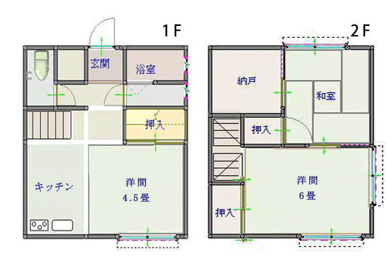 | 2F 6畳洋間 | 納戸1.5畳 | |