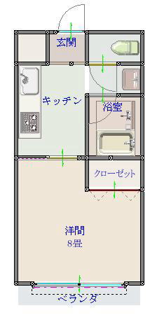 | 間取 | 1K(洋室8畳、K) |